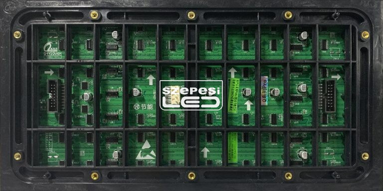 A LEDfal kijelzője 320x160 mm P4 full color LED modulokból épül fel